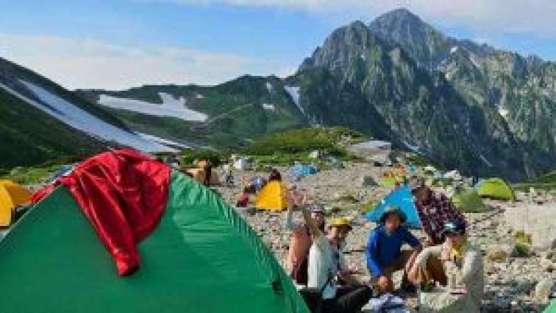 剣沢キャンプ場には12:45に下山しテント撤収、雷鳥沢キャンプ場にテントを移動、雷鳥荘の温泉で汗を流し生ビールで乾杯した。くれないに染まる峰々を眺めながら至福の時である。そして2日目のテン場は九州からソロで来た女子の来訪もあり夜遅くまで山談義に盛り上がった。