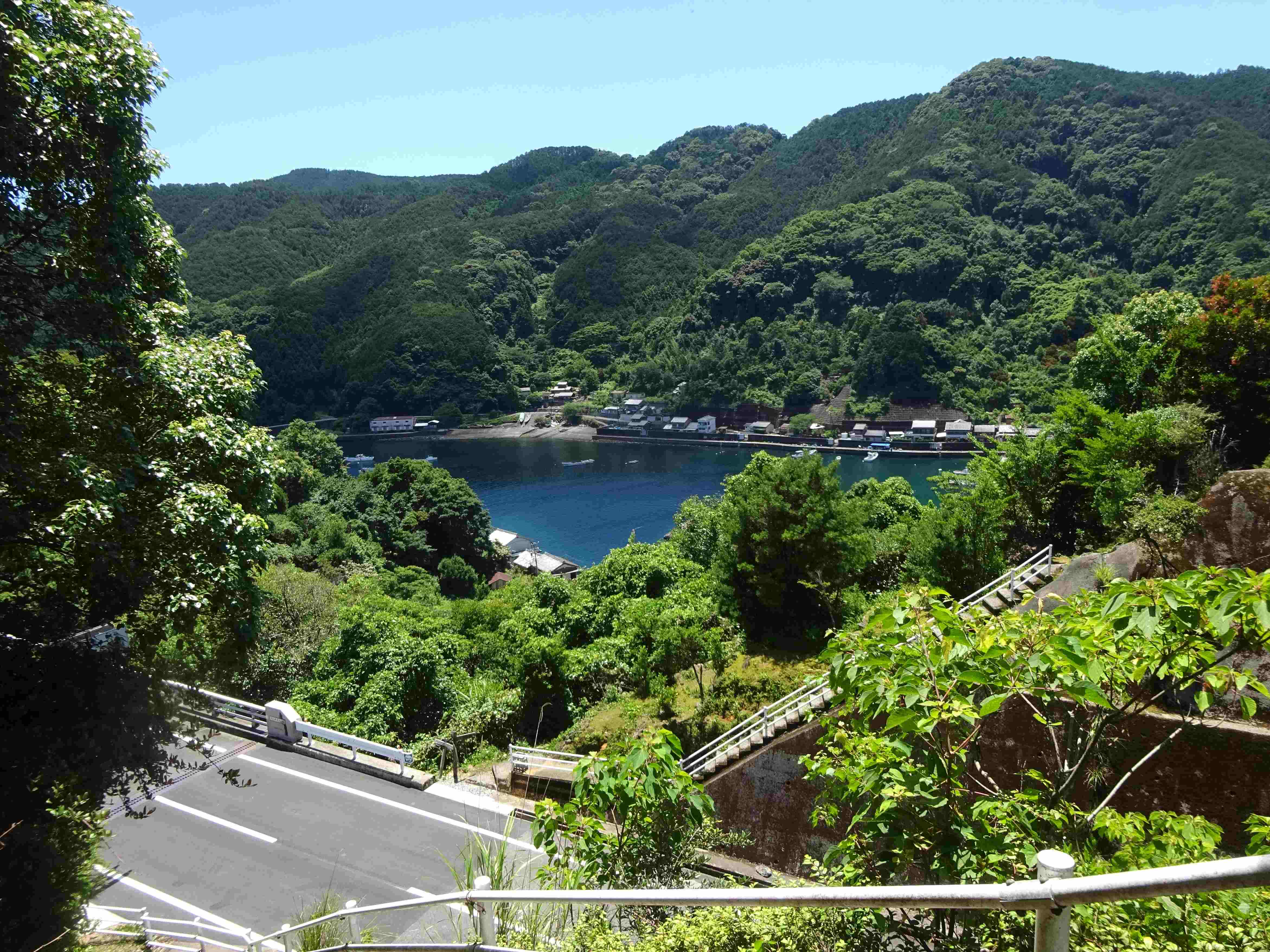 山頂直下の祠から大岩にかかる梯子を登れば、山頂だ。峠の休憩小屋に戻り、緩やかな下りで北川橋に出る。北川橋から尾鷲港沿いを程なく歩くと宿舎だ。