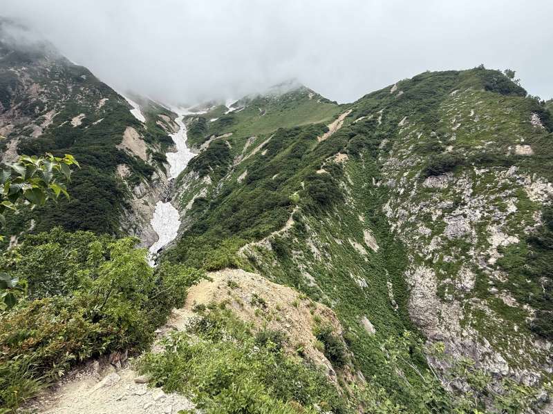 2日目:早朝五竜岳登頂予定で3:30起床したら暴風雨。風速15m位だったと思う。辺り一面真っ白で視界無し。朝食の際、小屋スタッフから「唐松方面予定していた方も含め、皆さん遠見尾根を下山してください」と言われた。五竜岳に向かう人は見かけなかった。我々も予定変更し、遠見尾根を下山した。小遠見尾根に到着するまでずっと雨具上下を着て、ほぼずっと雨、風も時折強い中、無事下山できた。エスカルプラザに到着し、入浴、昼食、買い物休憩をし、帰途についた。
