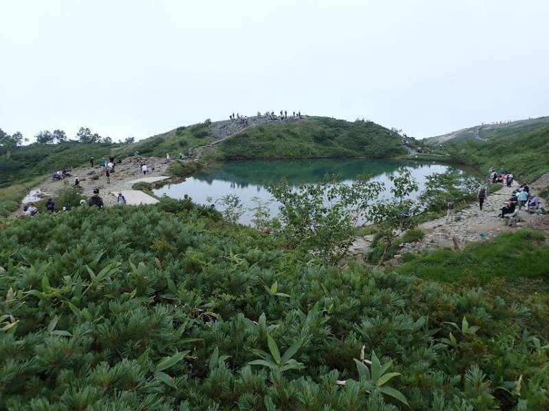 八方池から八方池山荘までは自然研究路(蛇紋岩地帯)となっており、お目当ての花を探しつつ木道を通り八方池山荘に至る。リフト&ゴンドラを乗り継いで1080m一気に降る。