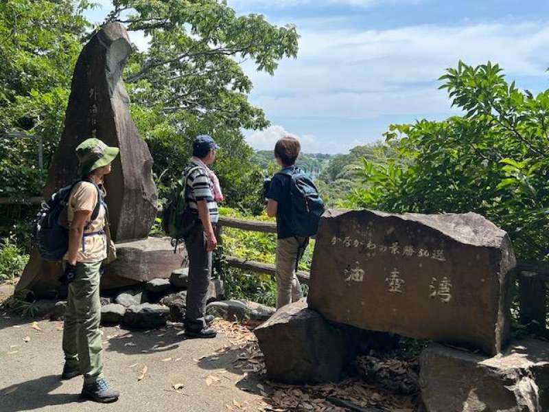 9:55京急三崎口駅バス停発=10:18シーボニア入口-10:35新井城跡(30)-11:40小網代の森(45)-12:30引橋バス停発=12:40三崎口駅バス停着(解散)