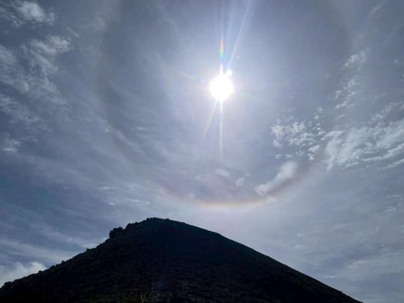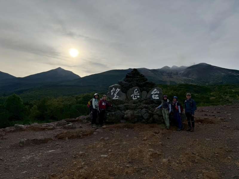 予定どおり4時30分、まだ暗い中をヘッドランプを付け真狩登山口より歩き始める。4合目まではなだらかな登り。4合目から8合目までジクザクのやや急坂、休憩を入れつつジワジワ登る。8合目~9合目はトラバース気味のルート、9合目からはお鉢巡りルートに向かって一気に登る。お鉢巡りは時計と反対周りに、途中から鋸のような山容の岩場が続く。皆、岩場の足さばきもグー、刺激があって面白いとの感想。大きな火口を回るお鉢巡りルートは、途中より、アースハンモックが見られるショートカットルートを選ぶ。このルートでも小さい火口を見ることができ、欲張りルートだと思った。後は、もと来たルートを下る。(SO)