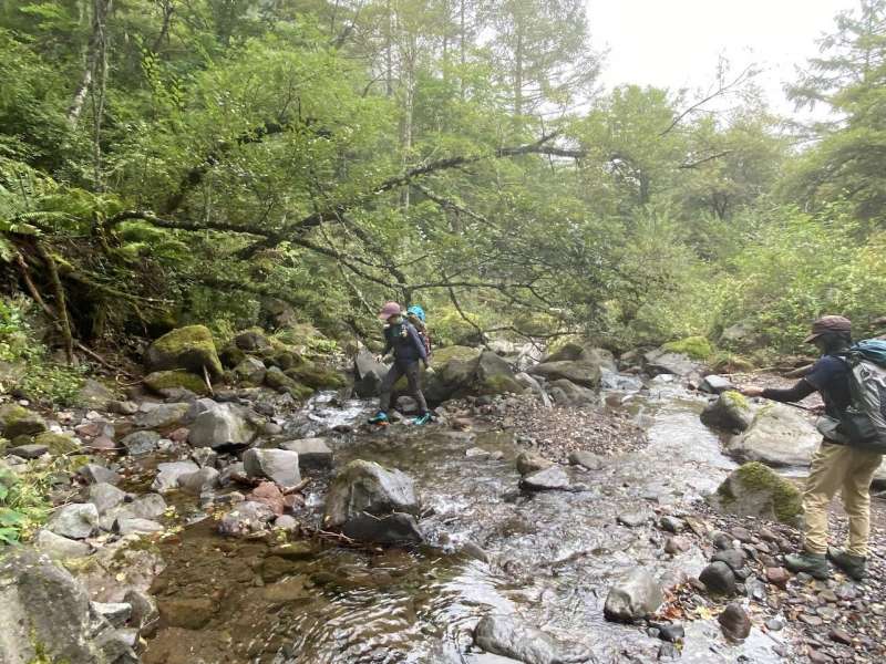 平塚6:10-8:30船山十字路8:50-9:05水場-9:25広河原9:30-9:55信玄の隠岩10:15-12:20西岳12:40-13:30乙女の水13:40-13:45青年小屋