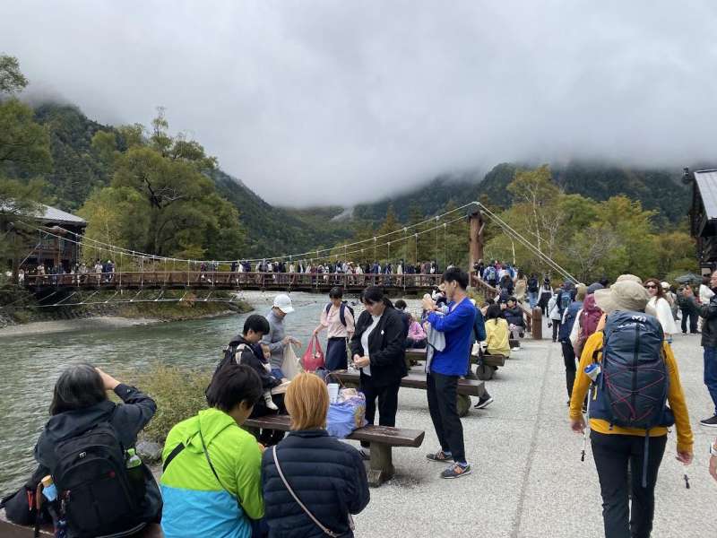 上高地バスターミナルを出発、河童橋はいつもの通り人だらけ。横尾まで3時間を頑張って歩く、途中徳澤園でソフトクリーム休憩。