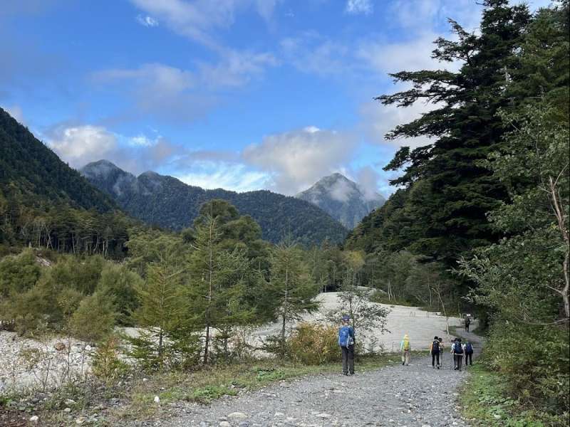 松本11:20=(松本電鉄)=12:00新島々12:10=(バス)=13:15上高地バス停13:25ー14:20明神ー15:20徳澤園ー15:50新村橋ー16:40横尾山荘(泊)