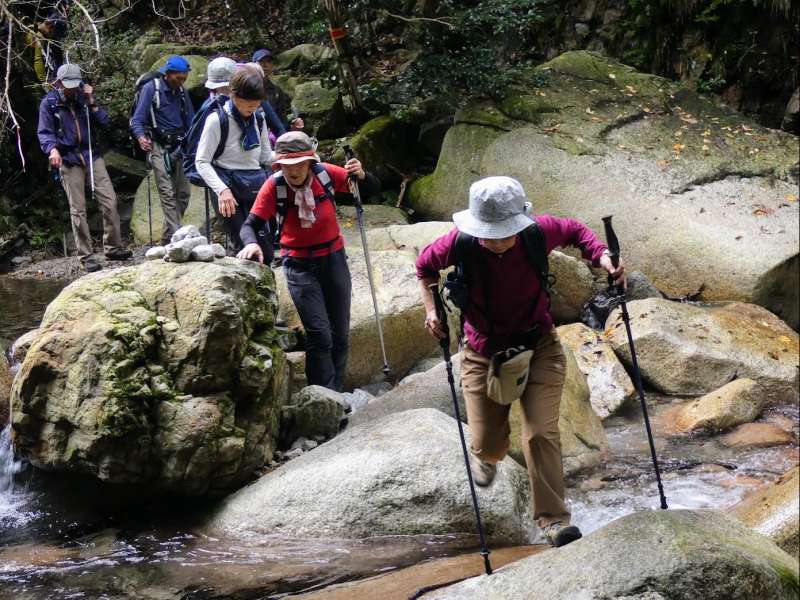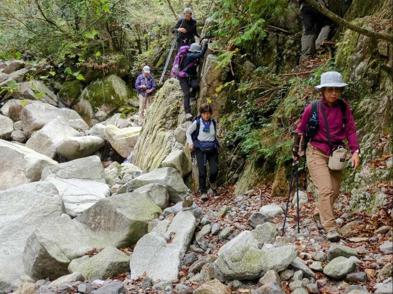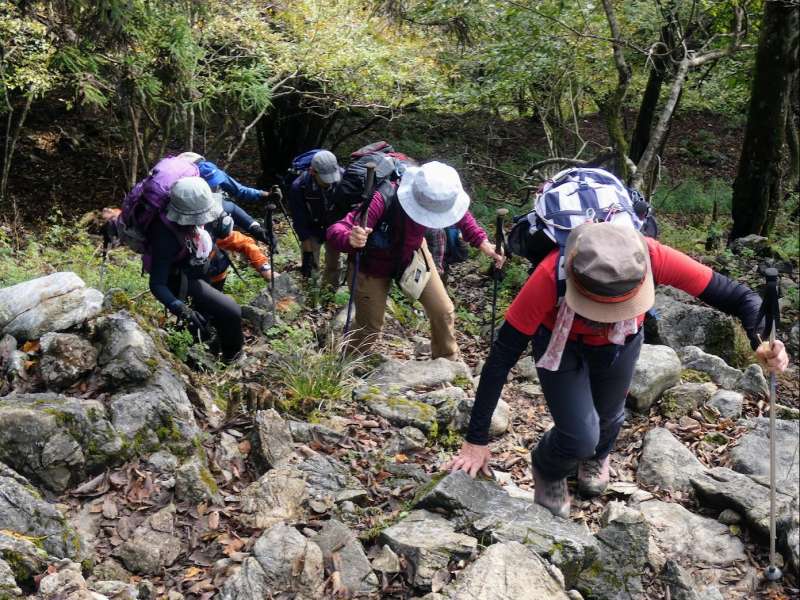 11月2日:彦根ホテル5:30=6:30宇賀渓駐車場6:45-7:15遠足尾根分岐⑤-7:17ホタガ谷出合-7:28魚止滝⑤-7:50金山登山道分岐-金山尾根⑤⑩⑩ー9:50遠足尾根合流点-10:20竜ヶ岳⑩-11:00重ね岩手前11:25-11:30重ね岩⑩-12:15石榑(いしぐれ)峠⑩-12:45長尾滝への分岐⑤-13:25長尾滝⑤-13:38中道登山道分岐-14:14金山登山道分岐-⑩-15:00宇賀渓駐車場15:15=16:30米原駅(解散)