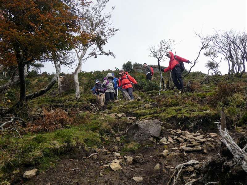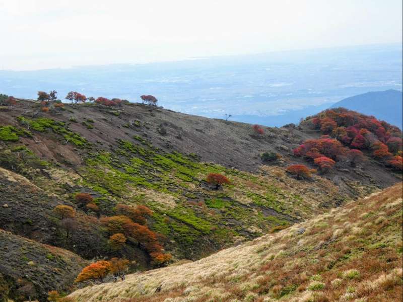 11月1日(伊吹山):伊吹山は登山道崩壊のため麓からは登れず、伊吹山ドライブウェイ9合目駐車場から山頂まで標高差100mあまりを登る選択肢しかない。駐車場から登りは中央登山道、下りは東登山道を使って周回した。西登山道は工事中で通行禁止。中腹までは晴れていて紅葉がきれいだったが、山頂付近は濃霧で視界はなかった。