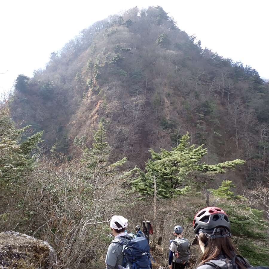 若彦トンネル手前駐車スペース08:30ー8:35大石峠登山口ー9:30淵坂峠ー11:00毛無山ー12:55吊り橋ー13:40十二ケ岳(昼食)14:10ー15:00金山(スリングワーク実習)15:55ー16:20金山登山口ー17:15大石峠登山口ー17:20駐車スペース