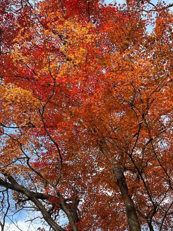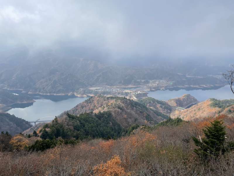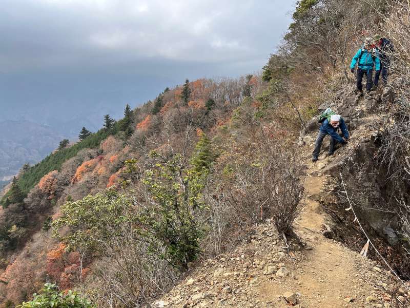 行動開始とともに雲が厚くなり、山頂からの眺望が限定的だったのが残念だった。紅葉はピークを過ぎていたものの、まだまだ十分美しかった。