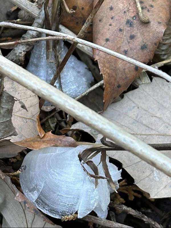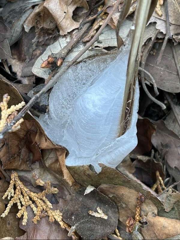 4年前の同じ時期に大洞山を訪れ、初めてシモバシラを見た時の感動を忘れられず、是非もう一度見たいという気持ちで観察会を計画した。雨の後、数日晴天が続き、朝晩の冷え込みも厳しくなってきたので期待していたが、願い通りいくつかのシモバシラを見つけることができた。小ぶりだが、色々な形があり、それぞれ清楚で美しかった。シモバシラは、天候などの環境条件が揃わないと見られないので、今日は、本当に幸運だった。