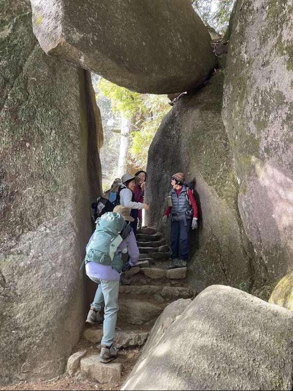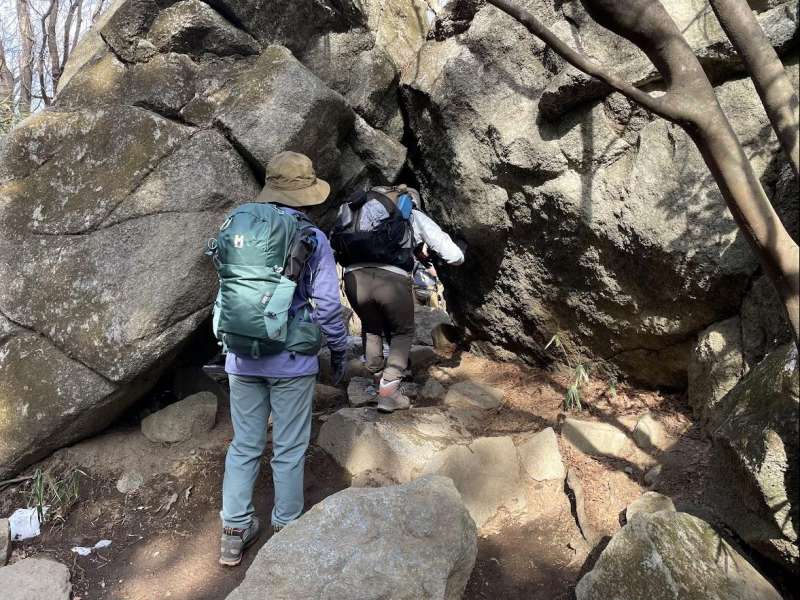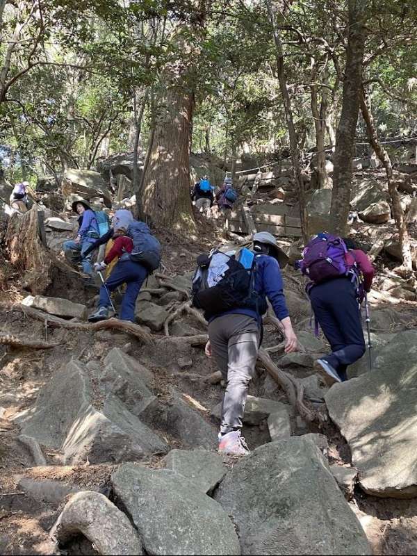 梅祭りの期間だったのでバス停の混雑は覚悟していたが、幸い臨時バスが出ていたので余り長く待たずに済んだ。とても暖かい日で、衣類調整、水分補給を適宜行いながら御幸ヶ原までスムーズに登れた。男体山山頂、紫峰杉を見学後、女体山山頂を目指す。山頂は大変混み合っていて写真撮影も順番待ちでかなり時間がかかった。下山道は、数日前の雪が残っていて凍結し、滑りやすかったので慎重にゆっくり降りた。ガマ石や、胎内くぐり、弁慶七戻りなど色々なパワースポットを見学し、ほぼ予定通りの時間に下山することができた。