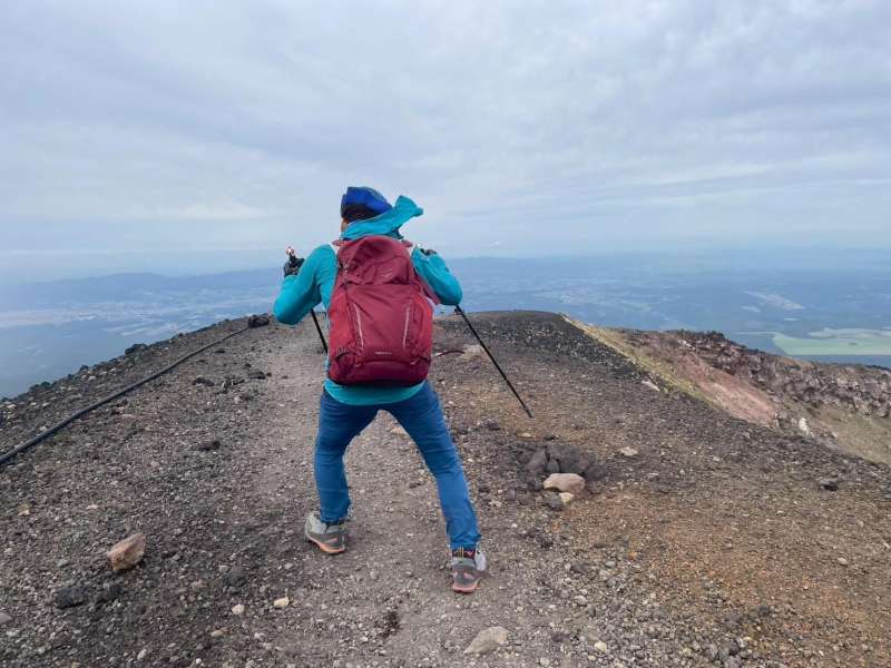 予定どおり4時30分、まだ暗い中をヘッドランプを付け真狩登山口より歩き始める。4合目まではなだらかな登り。4合目から8合目までジクザクのやや急坂、休憩を入れつつジワジワ登る。8合目~9合目はトラバース気味のルート、9合目からはお鉢巡りルートに向かって一気に登る。お鉢巡りは時計と反対周りに、途中から鋸のような山容の岩場が続く。皆、岩場の足さばきもグー、刺激があって面白いとの感想。大きな火口を回るお鉢巡りルートは、途中より、アースハンモックが見られるショートカットルートを選ぶ。このルートでも小さい火口を見ることができ、欲張りルートだと思った。後は、もと来たルートを下る。(SO)