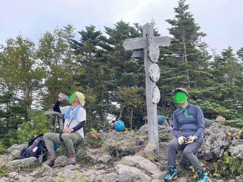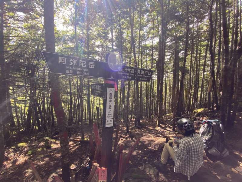 赤岳頂上山荘7:55-8:00赤岳8:05-8:55中岳9:00-9:10中岳のコル9:15-9:50阿弥陀岳10:00-10:10西ノ肩10:30-12:00不動清水12:05-12:45御小屋山-13:00分岐-13:20虎姫神社13:35-14:00船山十字路
