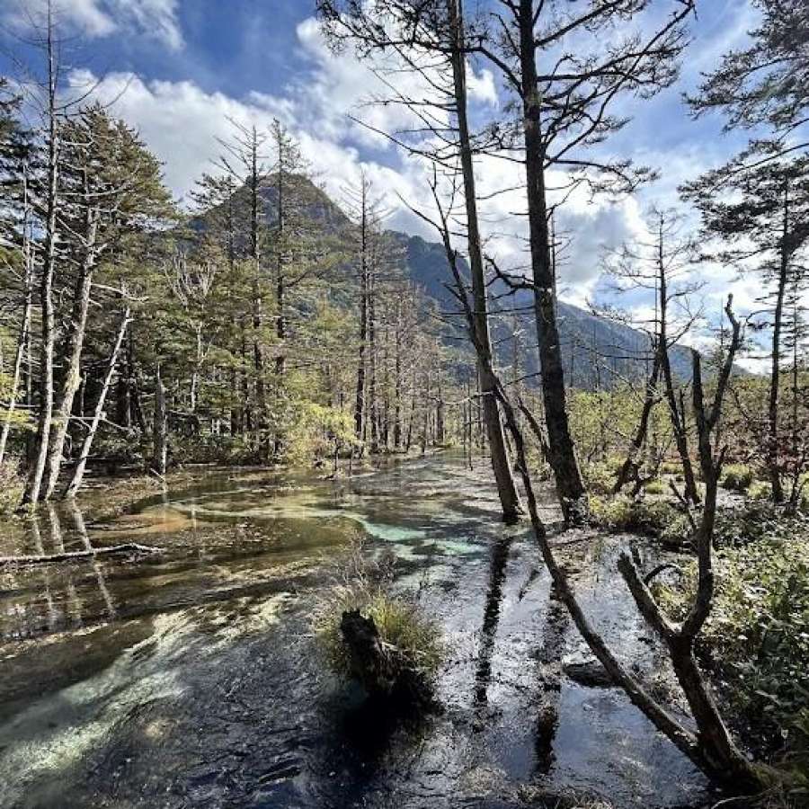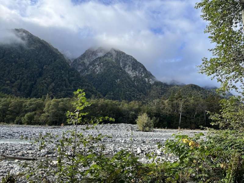 松本11:20=(松本電鉄)=12:00新島々12:10=(バス)=13:15上高地バス停13:25ー14:20明神ー15:20徳澤園ー15:50新村橋ー16:40横尾山荘(泊)