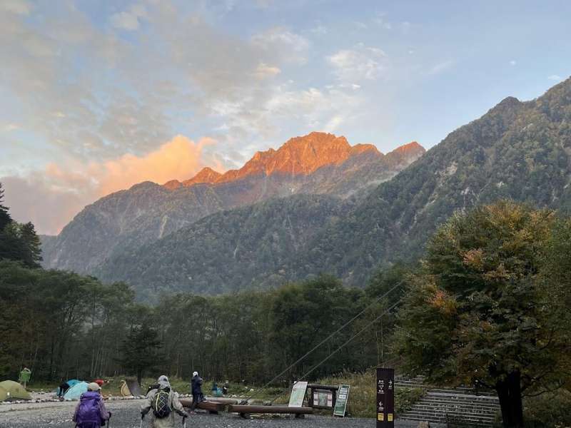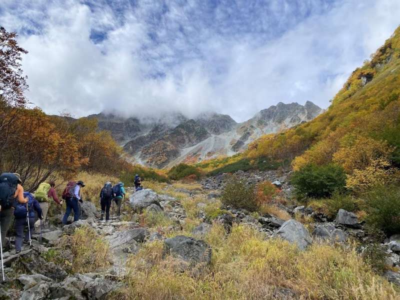 今回は天気に恵まれ、横尾ではモルゲンロートが楽しめ、紅葉はベストシーズンの上に例年以上の美しさでした。気温も10数度有り快適。