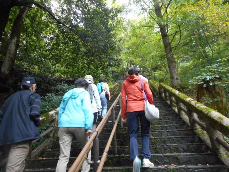 夜降った雨のため登山道が荒れていること、前々日に登山道で熊の目撃情報があったことから、天空の城展望台(戌山)へは希望者のみの参加とした。越前大野城に雲はかかっておらず、城展望台(戌山)からは雲海に浮かぶ大野城を見ることはできなかった。