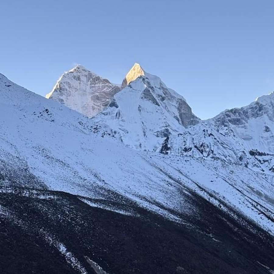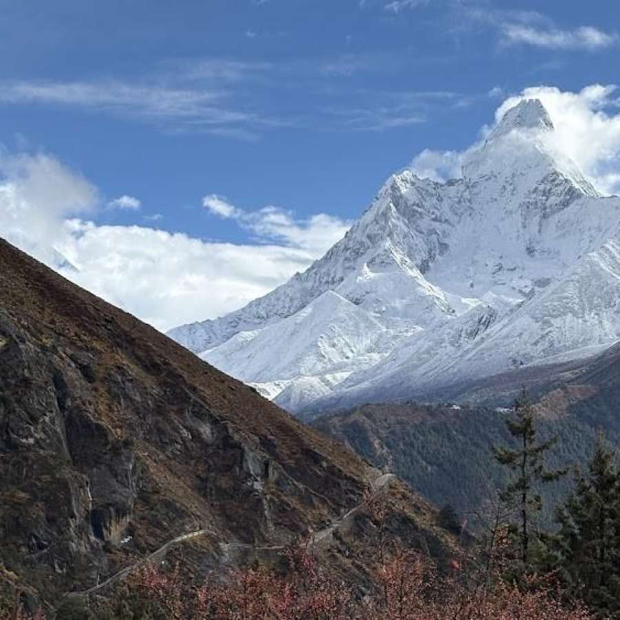 5年越しのエベレスト街道。一番の心配は高度順応だった。事前に富士山に2回登り呼吸法も練習して臨んだ。15日間毎日歩き続けるのは初めての経験だったが、高度以外にも朝晩と日中の気温差や乾燥のためか鼻水や咳が止まらず、体力よりも体調管理が最も大切で、また難しいと感じた。エベレスト街道沿いはシェルパ族の村が続いていて食事は日本人の口にも合い美味しい物ばかりだった。素晴らしい景色の中を毎日歩ける喜びもさることながら、ガイド、ポーターさんや村々の人達の温かさも印象深く、心に深く残る旅となった。