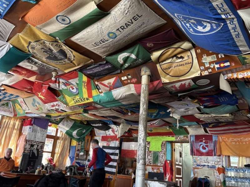 ナムチェバザールにあるサガルマータ国立公園博物館でエベレスト初登頂時の装備や資料などを見学。シェルパ文化博物館はシェルパの生活の様子などが説明されていた。その後日本人がオーナーのホテルエベレストビューに向かい、晴れていればエベレストのビューポイントであろうカフェでコーヒータイム。