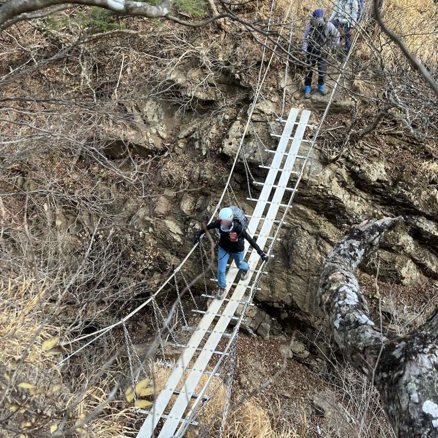 若彦トンネル手前駐車スペース08:30ー8:35大石峠登山口ー9:30淵坂峠ー11:00毛無山ー12:55吊り橋ー13:40十二ケ岳(昼食)14:10ー15:00金山(スリングワーク実習)15:55ー16:20金山登山口ー17:15大石峠登山口ー17:20駐車スペース