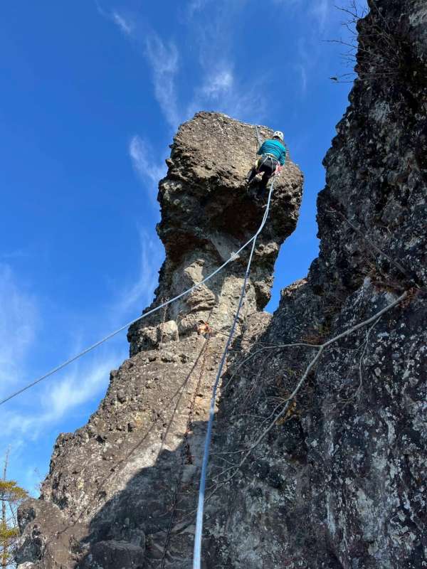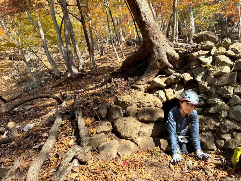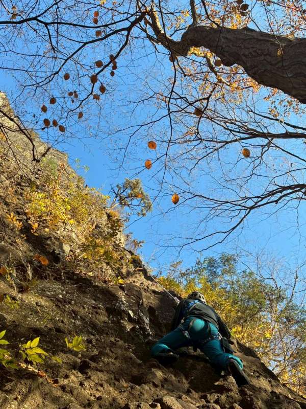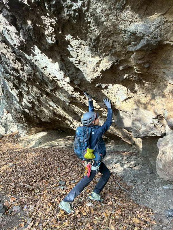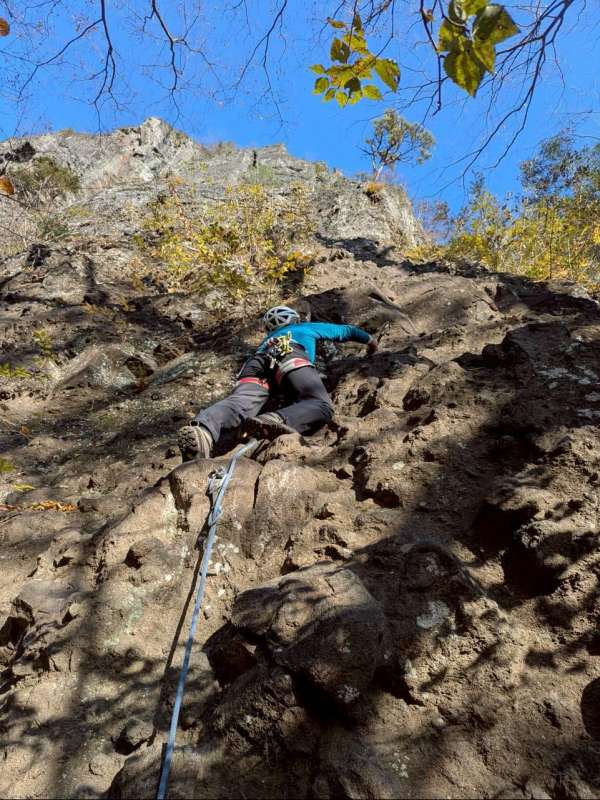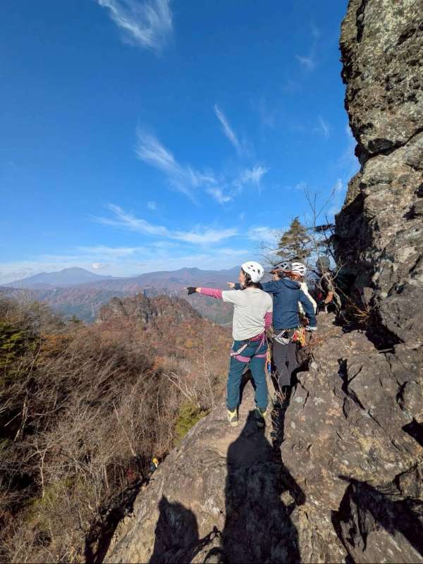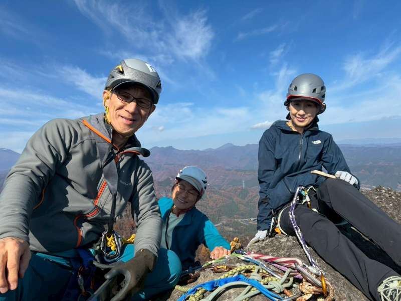 いつか登りたいと思っていた特徴的な岩峰、裏妙義丁須岩。岩を越え鎖を登り懸垂下降を楽しんでアスレチック感満載な錦秋の裏妙義を堪能しました。ベテランクライマー Mさん、Kさんの的確なご指示やフォローにより全行程安全に楽しく進むことができ感謝でいっぱいです。またムードメーカーのジャンダルムKちゃん(略称J)、いつもお菓子補給ありがとうございます。美味しくいただきました。クライミングを始めて山の楽しさが広がりましたが、今回このルートを踏破できたことでさらに岩峰の楽しさを実感しました。西上州には素敵な岩峰がたくさんあるので、またみなさまとご一緒できたら嬉しいです。
