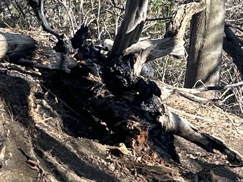 梅の木尾根の下りでは最初の枝尾根で道を間違えたがすぐ気づいて修正し、その後は問題なく通過できた。二ノ沢の頭では年末の山火事の痕跡を見た。浄発願寺奥ノ院経由で日向林道に降り、日向神社バス停から予定より1時間早いバスで伊勢原駅に向かった。