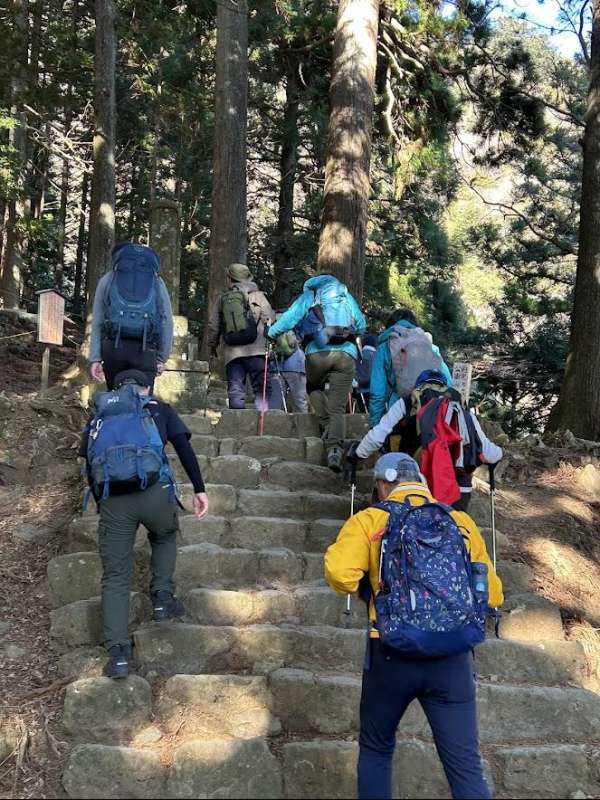 伊勢原駅バス停、大山ケーブル駅共混雑していたが、増発便が出ていて予定通り歩き始めることができた。阿夫利神社から急な石段、急坂が続いたが、途中富士山がとても綺麗に見える場所があり、皆感嘆の声をあげた。下りも片側が崩れている危険箇所があったり、強風が吹いたり、思いの外厳しい登山となったが、無事下山。ほぼ計画通りの時間に解散することができた。