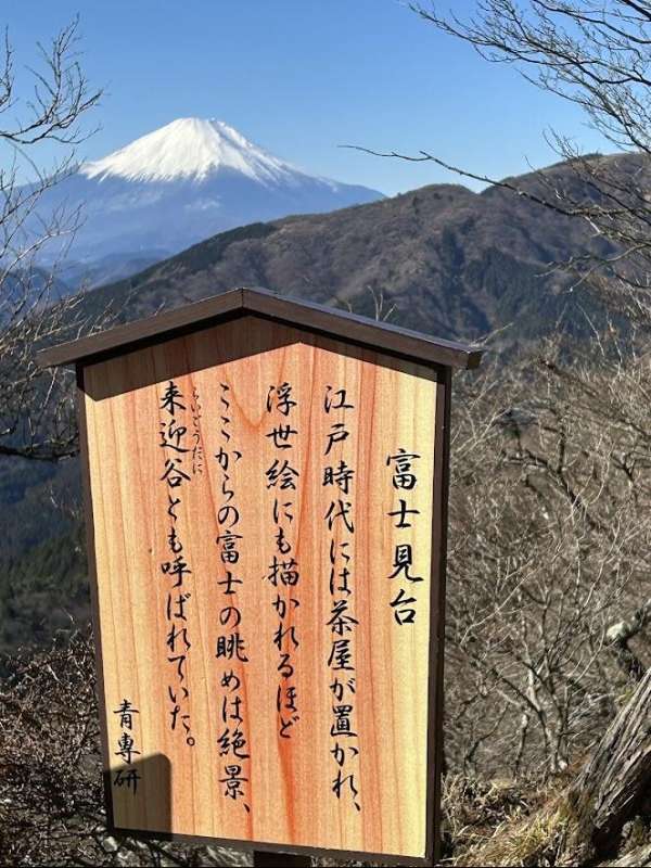 体力に自信のない人でも気軽に参加できるコースをということで、「ゆったりのんびり大山詣」と銘打ってケーブルカーを利用した計画を立てたが、実際登ってみると結構歩きごたえがあり、さすが大山だと思った。今日はとても天気がよく、青空に映える富士山が印象的であった。また、山頂で温かいお汁粉を皆で食べたり、解散後、豆腐料理を味わいながら親睦を深めたりできたのも良い思い出になった。新年をこのような気持ちの良い山行で始めることができて山の神様に感謝したい。