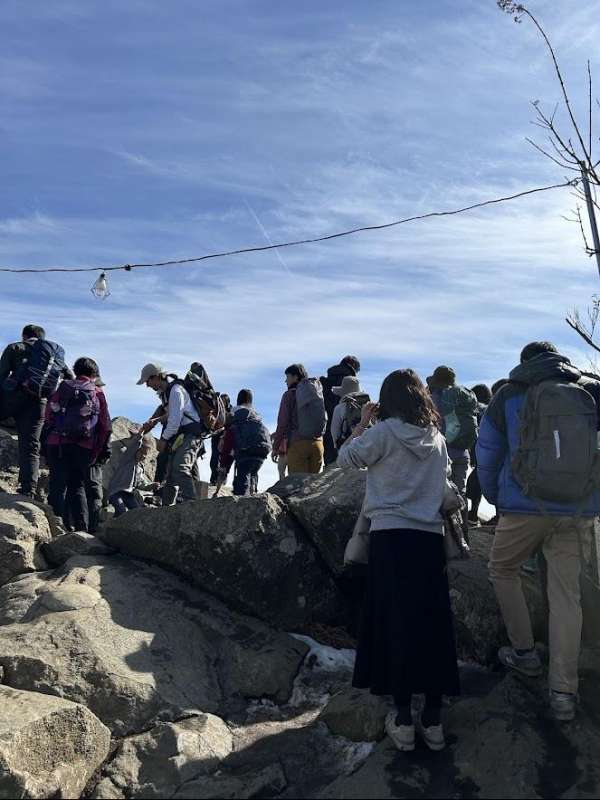 梅祭りの期間だったのでバス停の混雑は覚悟していたが、幸い臨時バスが出ていたので余り長く待たずに済んだ。とても暖かい日で、衣類調整、水分補給を適宜行いながら御幸ヶ原までスムーズに登れた。男体山山頂、紫峰杉を見学後、女体山山頂を目指す。山頂は大変混み合っていて写真撮影も順番待ちでかなり時間がかかった。下山道は、数日前の雪が残っていて凍結し、滑りやすかったので慎重にゆっくり降りた。ガマ石や、胎内くぐり、弁慶七戻りなど色々なパワースポットを見学し、ほぼ予定通りの時間に下山することができた。