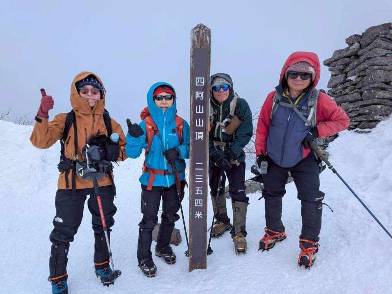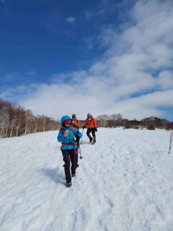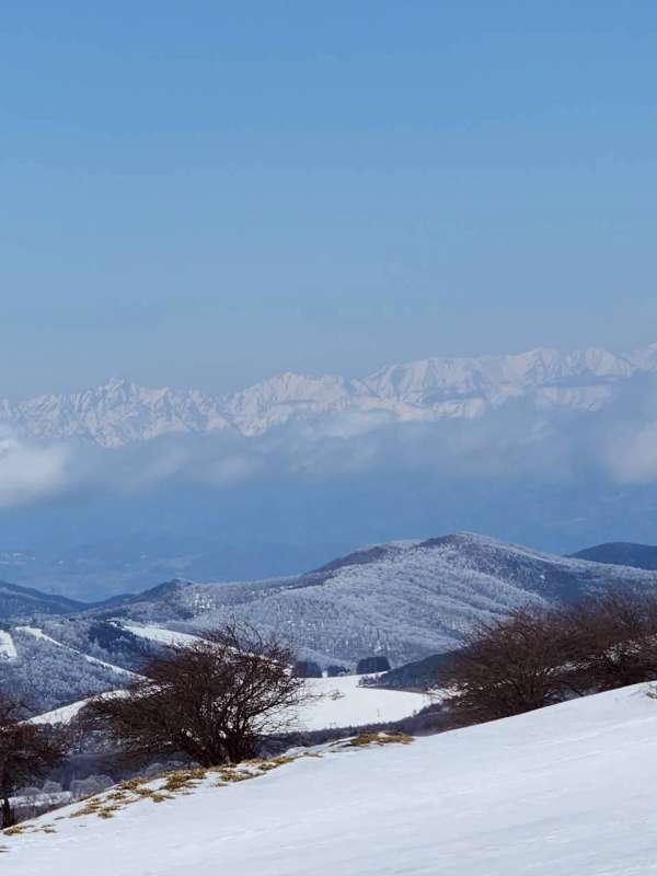 そして翌日の四阿山は高気圧に覆われテンクラも1日中がAのはずでしたがたしかに朝は雲一つない青空であったが稜線に出た頃は雲に覆われ突き刺すような風の冷たさに心が折れた。ワカンを着けるほどでは無いが一足ごと足の沈む四阿山の登りは(塔が岳ピストンよりきつい。)体力を消耗させいつになったら着くのが思ったが山頂の社に着いた時はホットした。菅平牧場からの根子岳~四阿山周回の7~8時間コースはトレース薄くラッセルになりそうで今回は選択しなかったが行ってみて「いい判断だった。」と思った。